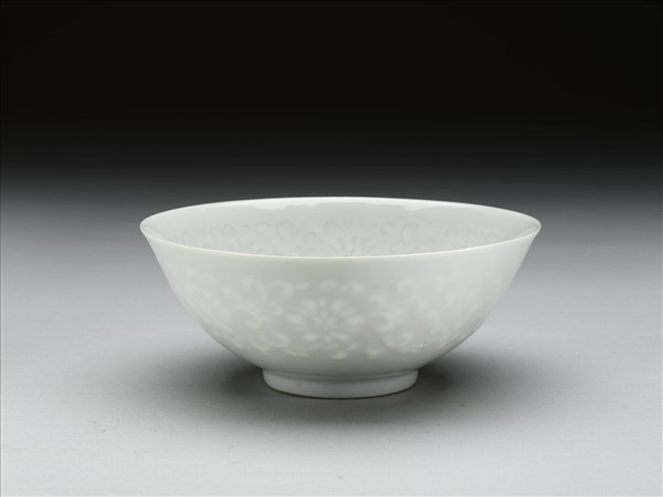甜白釉透花番蓮紋碗