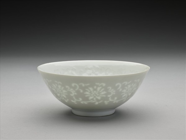 甜白釉透花番蓮紋碗