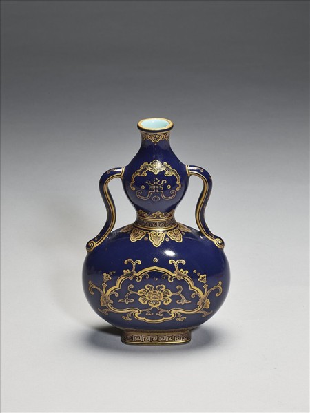 霽青釉描金花卉紋葫蘆扁瓶