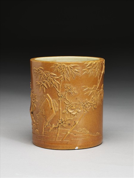 仿雕竹黃釉竹紋筆筒