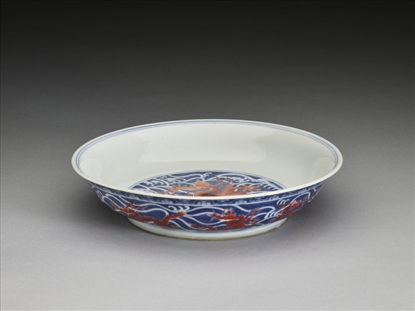 青花描紅龍紋盤