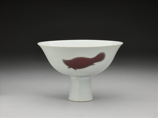 釉裡紅三魚紋高足碗