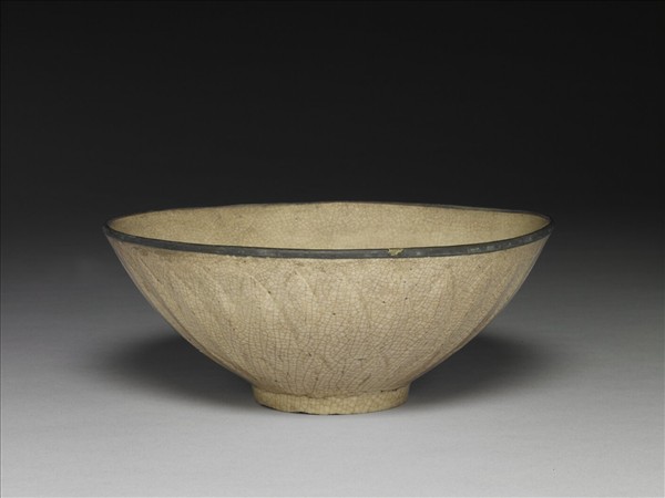 米黃釉刻花蓮瓣紋碗