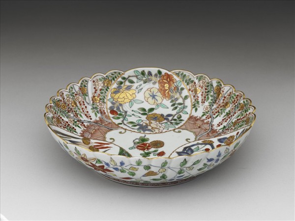 有田窯 青花五彩描金花卉紋菊瓣盤