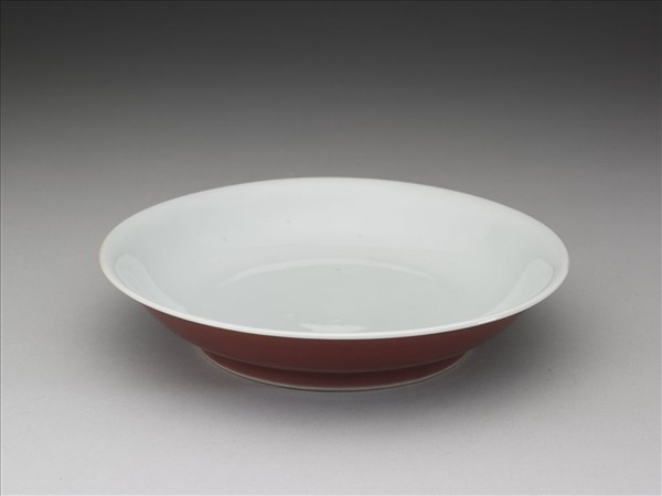 霽紅釉白裡盤
