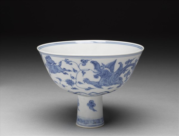 青花夔龍紋高足碗