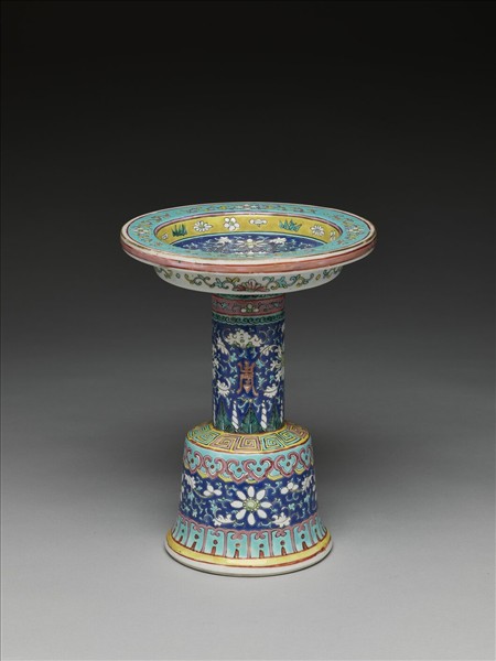 粉彩番蓮紋高足盤