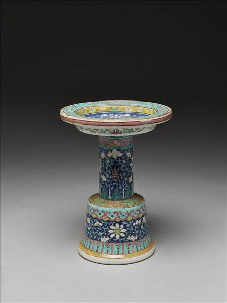 粉彩番蓮紋高足盤