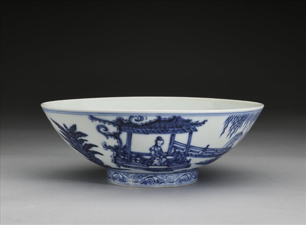 青花山水仕女圖碗