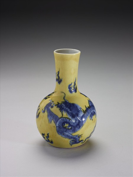 黃地青花龍紋瓶