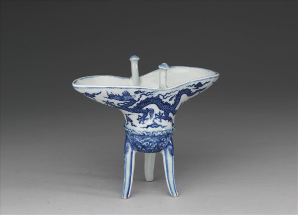 青花雲龍紋爵杯