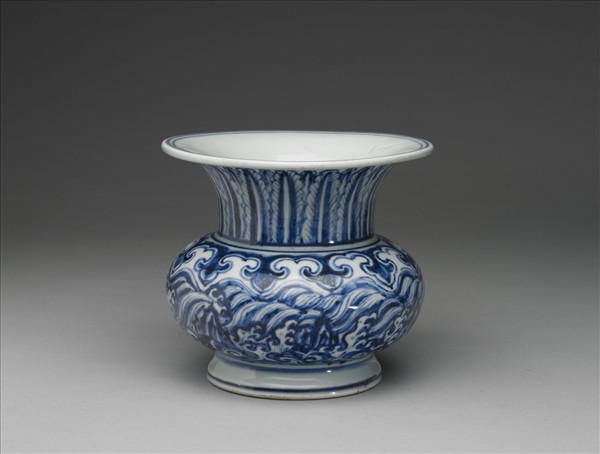 青花波濤蕉葉紋渣斗