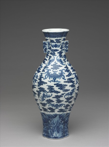 青花雲蝠海棠式貫耳瓶