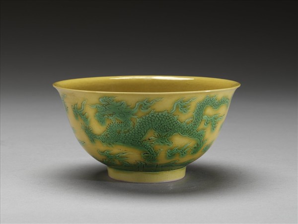 黃釉綠彩雙龍紋碗