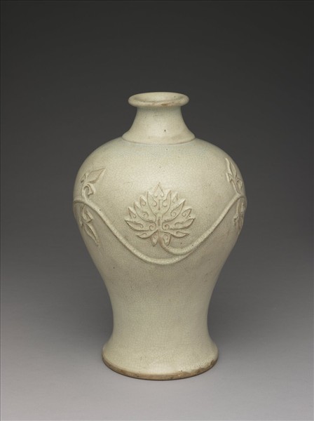 廣窯 月白釉番蓮紋梅瓶