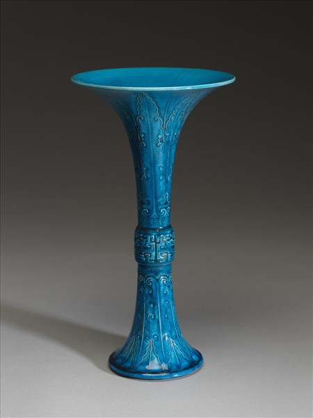 孔雀綠釉蕉葉夔紋觚