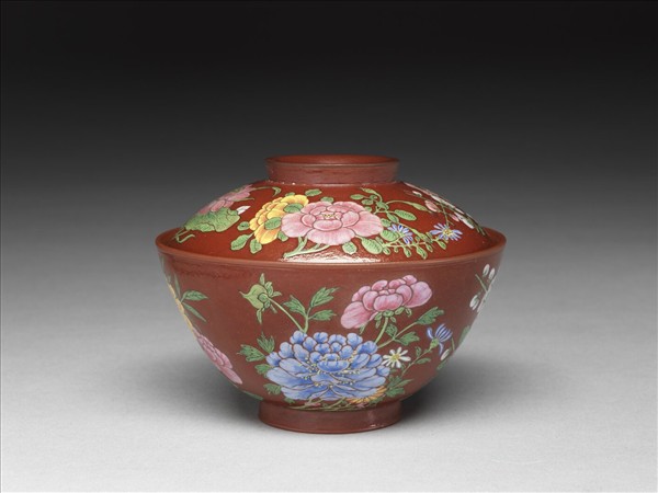 清宮留存康熙時代的宜興胎琺瑯彩茶具傳世僅十九件,器形主要為茶壺和蓋碗,每件都以細筆作畫,悉數收藏於國立故宮博物院。康熙皇帝主導下的琺瑯彩工藝研究計畫,於探索過程發現琺瑯料較易附著於粗糙的器胎,因而由宜興地方民窯燒造了一批紫砂胎的茶壺與蓋碗送到宮中加飾琺瑯彩,從傳世這批宜興胎畫琺瑯器看來,當時確已能掌握施彩及敷染技法,而讓紋樣皆自然仿真。宜興胎畫琺瑯器首創於康熙朝清宮作坊,後來也隨著全球貿易網絡的流通,成為歐洲各瓷廠競相襲仿的樣式之一。