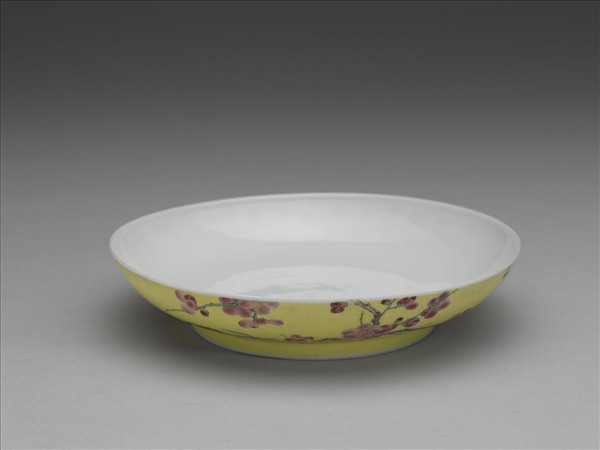 琺瑯彩黃地梅竹紋碟