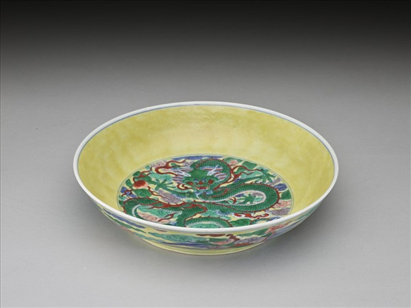 黃地五彩龍紋盤