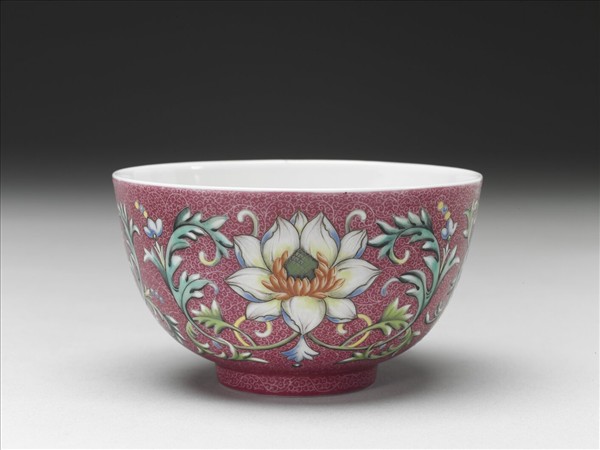 洋彩紅錦地番蓮紋杯