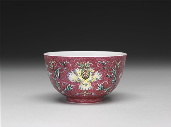 洋彩紅錦地番蓮紋杯