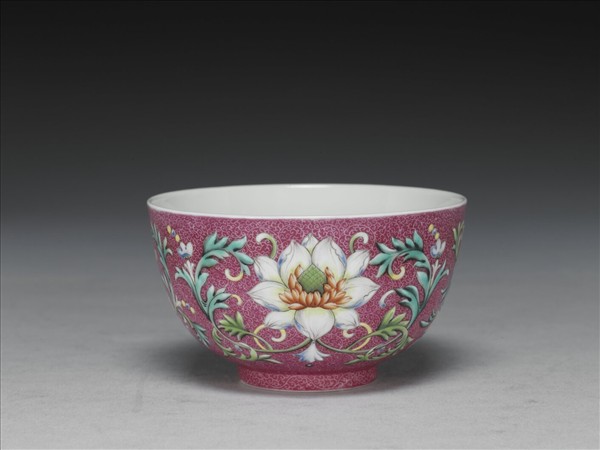 洋彩洋紅地番蓮紋碗
