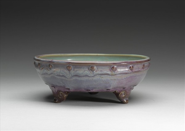 鈞窯 天青葡萄紫釉蓮瓣式盆托