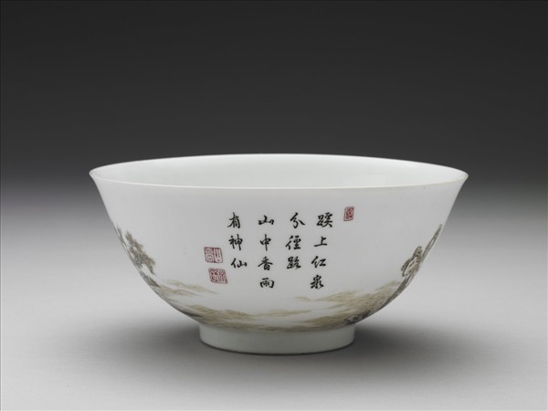 琺瑯彩瓷赭墨山水碗