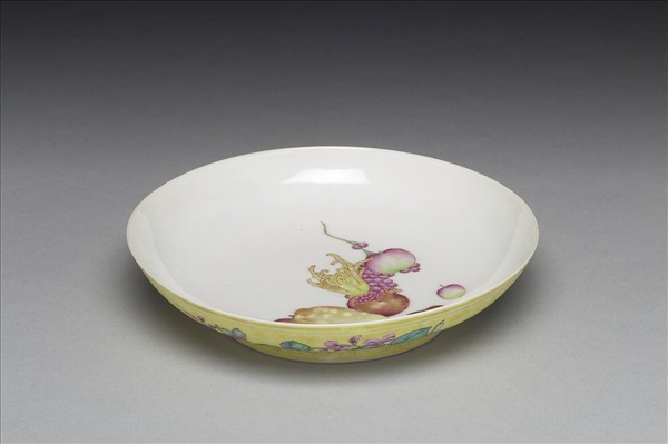 琺瑯彩黃錦地瓜果碟