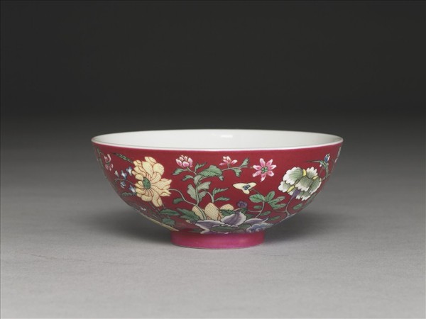 琺瑯彩紅地花卉紋碗