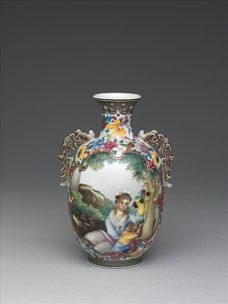 琺瑯彩開光西洋人物圖螭耳瓶