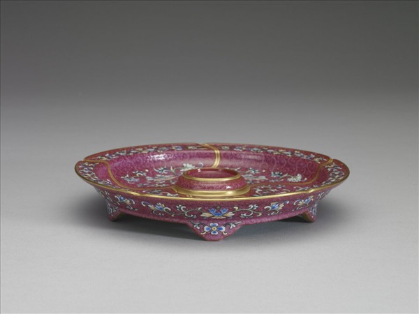 琺瑯彩紅錦地花卉紋托盤
