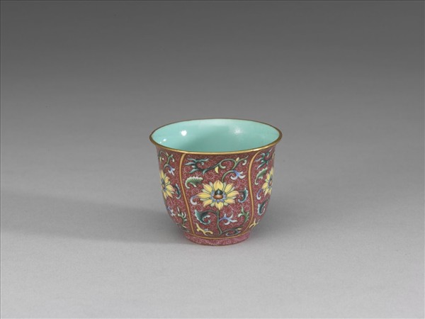 琺瑯彩紅錦地花卉紋杯