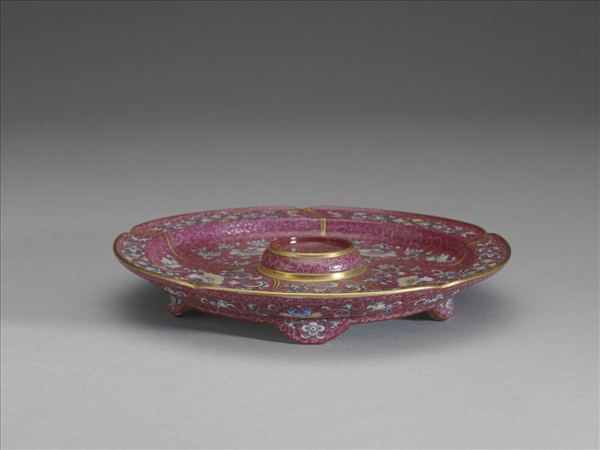 琺瑯彩紅錦地花卉紋托盤