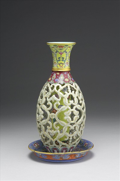 琺瑯彩鏤空如意花卉紋轉心瓶