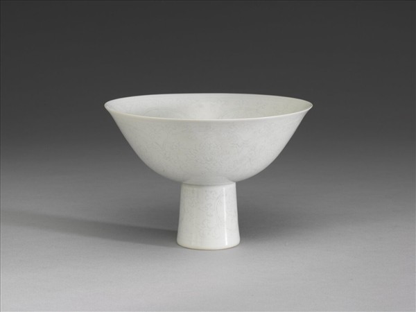 甜白半脫胎番蓮高足碗