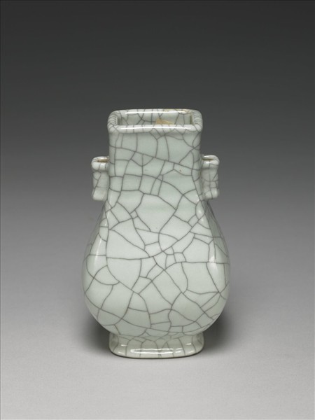 仿哥釉貫耳方瓶
