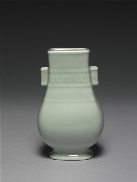 冬青釉貫耳方壺