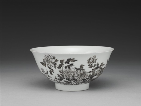 琺瑯彩赭墨牡丹碗
