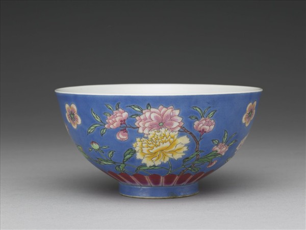 琺瑯彩藍地四季花卉碗