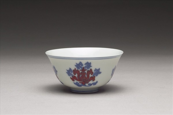 青花紅彩花卉紋杯