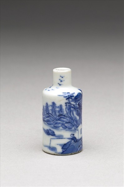 青花瓷山水人物紋鼻煙壺