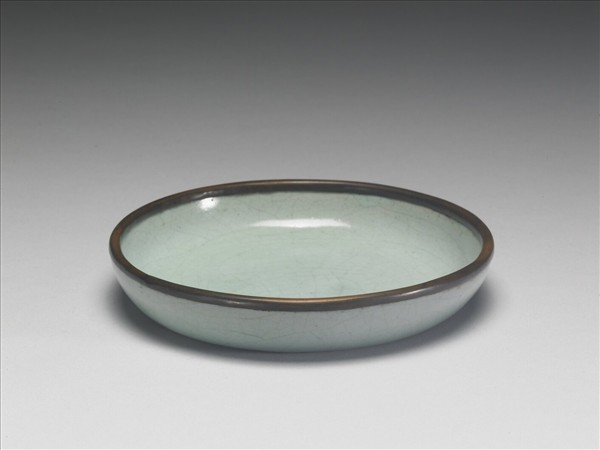 圓口,口沿嵌一圈銅釦,弧形淺壁、平底無足。滿釉支燒,通體施青釉,釉色粉青,局部現出粉色光澤。底面排佈三個細小的支釘,中心刻「奉華」兩字銘。與之相似的器形,亦見於河南省寶豐縣清涼寺窯址。 透過《活計檔》記事,可以追溯出這件作品在清宮流傳的經過。首先,雍正七年(1729)清宮出現一箱內裝二十九件汝窯的箱匣,從登錄而出的品名,可對比出「奉華字圓筆洗一件」,應指此件展品。乾隆六年(1741),這箱汝窯在皇帝喻旨下獲配象牙標籤,取名為「品重青瑤」。乾隆十六年(1751)因內匣遭受蟲蛀,再度引起關注,重新更換包裝。 其次,藉由御製詩也得知乾隆四十三年(1778)他曾經針對這件作品創作「題汝窯奉華盤」,詩中以「為閣為官不可知,奉華兩字底鐫之。尺梟集裏傳名氏,見說風流女畫師」表達出他的鑑賞觀。同時又在詩句下補充說明:「盤底鐫奉華二字,考宋高宗劉貴妃有奉華大小二印」,提出「奉華」實為南宋劉貴妃的私人印記。至乾隆四十四年(1779),通過〈詠汝窯缾〉御製詩的詩注對於「內府有汝窯盤,底鐫奉華二字。考奉華乃宋高宗劉貴妃之號,妃善畫,每用奉華印」的考證,得知他對汝窯瓶的識別主要是依據「奉華」銘碟而來,反映出「奉華」銘圓洗是乾隆皇帝識別過程中的重要參考資料。