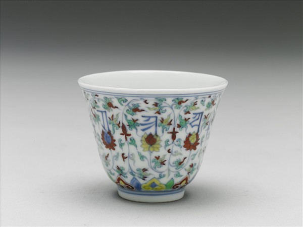 鬥彩蓮花梵文杯