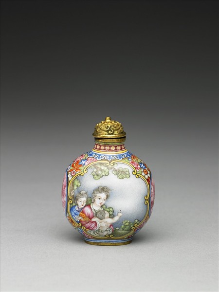 銅胎畫琺瑯西洋母子圖鼻煙壺