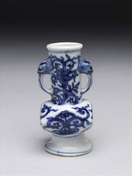 青花花卉紋折方瓶