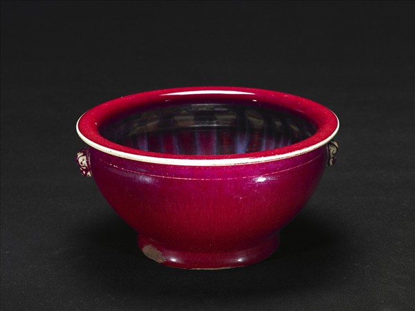 霽紅釉獸耳盆