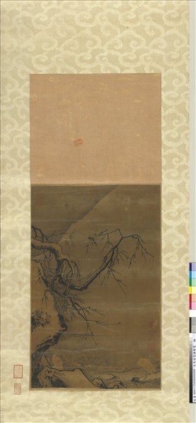馬遠(活動於西元1190-1224年),字欽山,祖籍山西河中(今山西永濟),遷居杭州。曾於光宗、寧宗兩朝(西元1190-1224年)為畫院待詔,擅畫山水、花鳥、人物,尤以山水的成就最卓越,與夏圭齊名,而有「馬夏」之稱。   本幅生動地畫出冬天大地間僅剩下黑白兩色的強烈對比。畫家以濃墨畫樹石,積雲以留白來表現,灘旁三隻鷺鷥躲在石後,另一隻停在溪畔瑟縮不已。馬遠呈現的畫面,往往經過充分剪裁,空茫之處所發揮的造境效果,不亞於有實景處。全幅潔淨雪白,有著寂靜肅穆的感覺。枝幹以拖枝法畫成,運筆挺勁有力。山石施以斧劈皴法,筆意粗勁野逸。