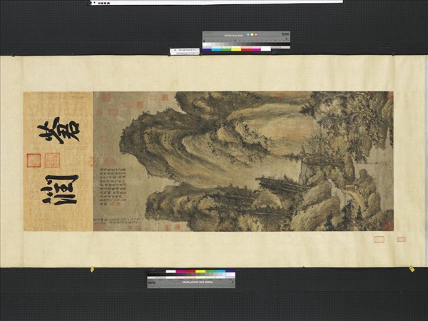 方從義(約1301-1378後),字無隅,號方壺、上清羽士、鬼谷山人、不芒道人、金門羽客。方從義是江西龍虎山上清宮的正一教道士。平素所作,大率墨瀋淋漓,高古逸趣見稱。元代對宗教採取比較寬容的態度,加上第三十五代天師張可大效力於元世祖,因此相當受到統治階級的扶持和信任,再加上後來的弟子吳全節、夏文泳等人在京師十分的活躍,使得正一教在當時的勢力強大。方從義雖是正一派道教道士,然卻學仙道於當時全真教領袖人物金蓬頭,故而與黃公望熟識。金蓬頭去逝後,出遊於天下名山大觀,并在至正三年(1343)到當時的首都大都(北京),此行不只觀賞了巍峨山川,開拓其眼界外,更結識了許多高官文士,如張彥輔、余闕、危素等人 ,其中太一教道士張彥輔是蒙古人,亦為宮廷畫師,余闕為唐兀人,於元統二年(1334)登進士第二,而危素(至正二年用薦為經筵檢討)更是十分欣賞他的學養及才能。本幅畫陡峭直聳山峰,氣勢奔騰,山形用披麻皴寫成,線條充滿著不安定而向上感覺,而樹、竹、小屋、木橋是以水份飽滿的用墨、隨意的線條及大小不等的點畫出,散發著奔放的氣息,隨意飛動的苔點更使畫面充動感。據畫上題跋,此畫為南溟真人(程元翼,在龍虎山有心跡雙清亭)所作,南溟真人與方從義皆為龍虎山上清宮的道士,畫家以扭動不安的線條,將山畫得如群浪奔騰,自有一股奇縱之氣由畫面而出,反映出道教視山水為氣之流動聚散的過程,而非一成不變的存在之觀念。(童文娥)