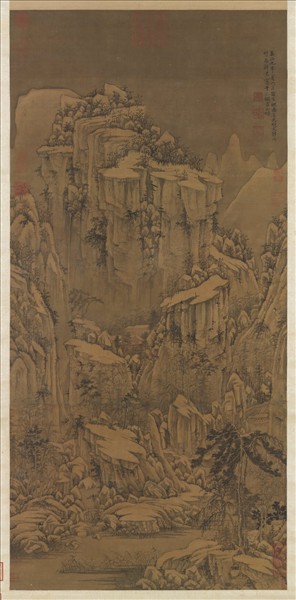 馬琬(活動於西元一三四二—一三六六年),金陵(今南京市)人。字文璧,號魯鈍。善山水,工書與詩。每遇佳山水,必託之毫素,輒自題其左,時稱三絕。 萬山積雪之中,多作平崗斷壁。山腳碎石分面偏於方形,故有森森然冰山萬仞、明潔晶瑩之感。全作用筆似剛勁而實圓渾,用墨似簡澹而實靜穆,蓋馬文璧畫中之別裁者也。根據幅上款題,知此作為至正九年(一三四九)馬氏為竹西聘君所畫。